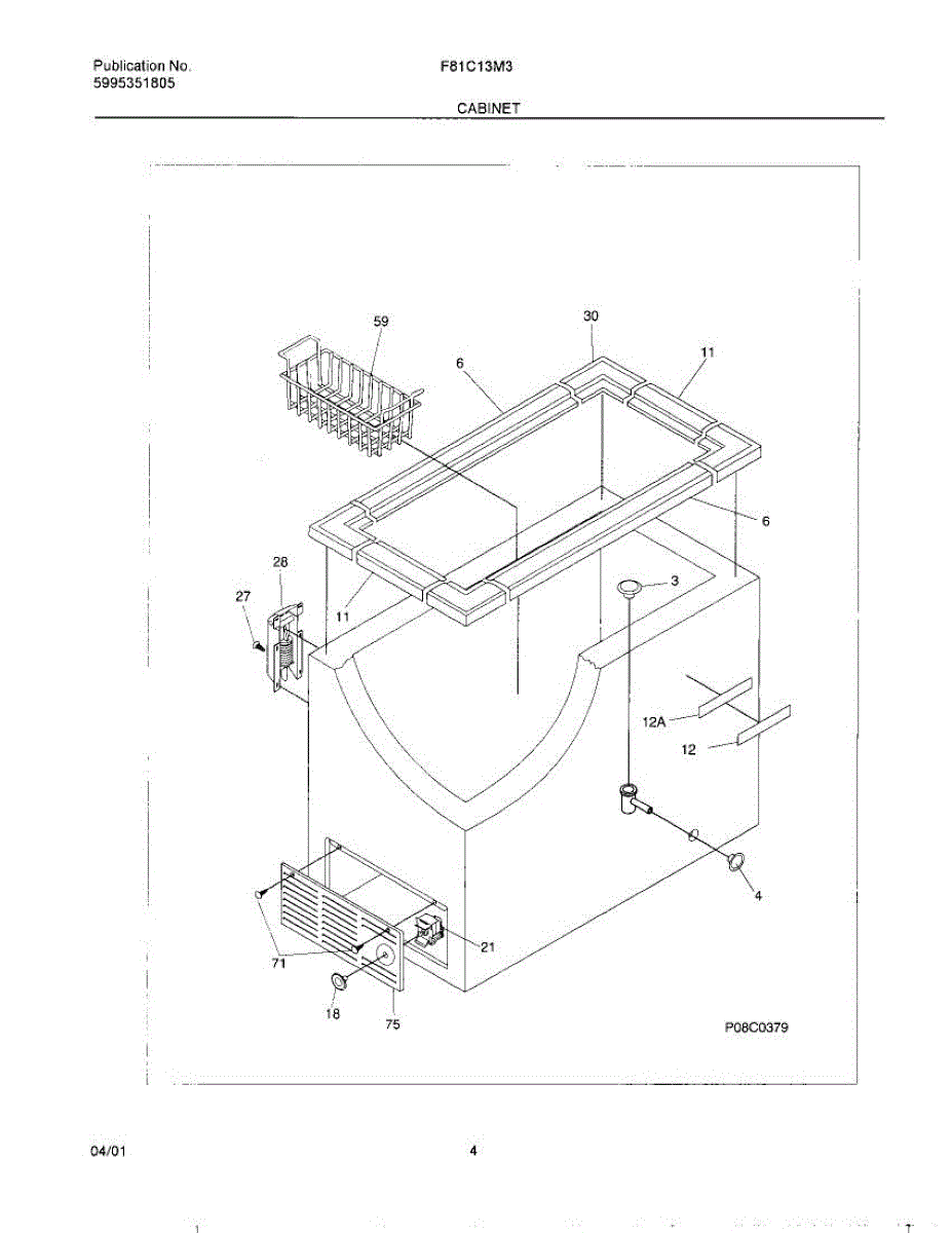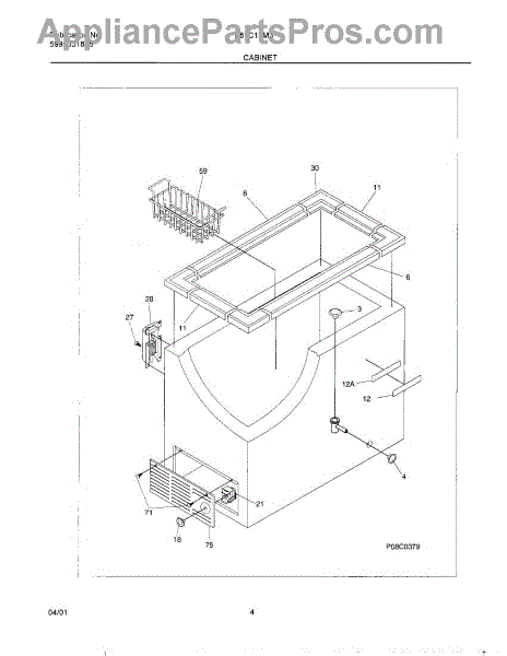 White access panel for chest and freestanding freezers. Covers internal components and provides service access. Replace if cracked, discolored, or missing.