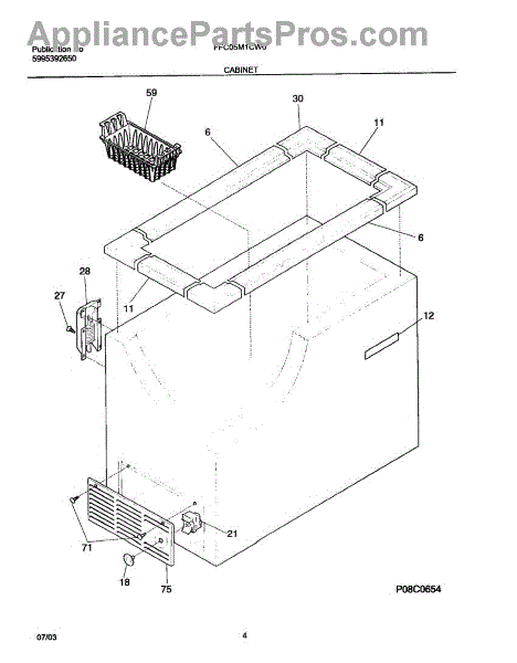 The Freezer Basket is an OEM part for Frigidaire freezers. It provides organized storage space within the freezer, allowing for easy access and efficient use of the freezer's capacity by keeping items contained and separated. It measures approximately 18 x 11 inches.