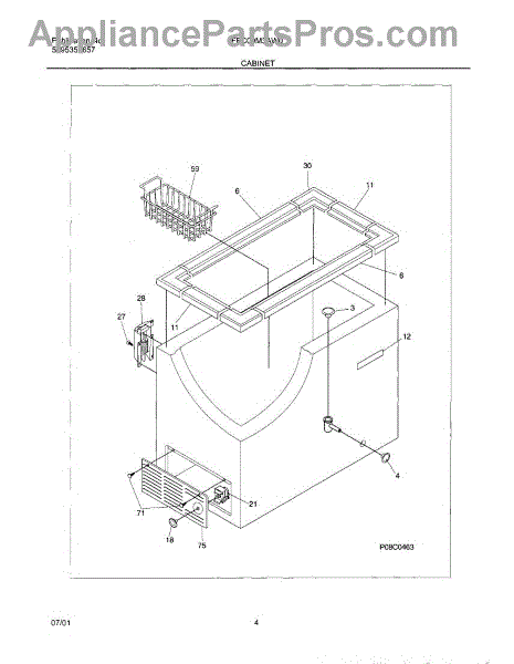The Freezer Basket is an OEM part for Frigidaire freezers. It provides organized storage space within the freezer, allowing for easy access and efficient use of the freezer's capacity by keeping items contained and separated. It measures approximately 18 x 11 inches.