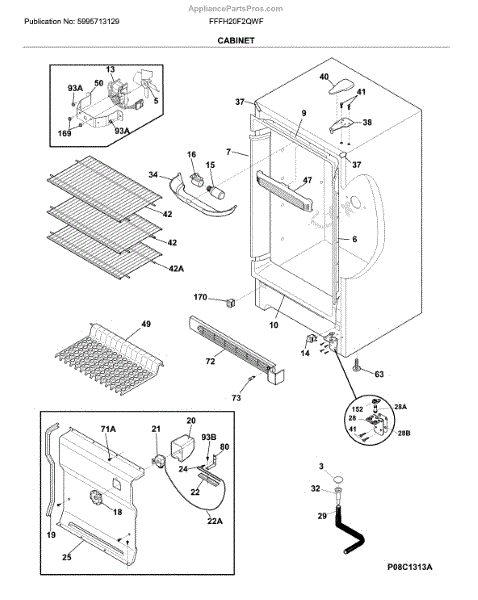 The Door switch is an OEM replacement part for Frigidaire refrigerators. This part turns the light on/off as the door opens and closes. Causes of a faulty door switch include normal wear of electrical contacts from repetitive on/off cycles. Moisture exposure may potentially corrode internal connections. Symptoms of a bad light/switch include: