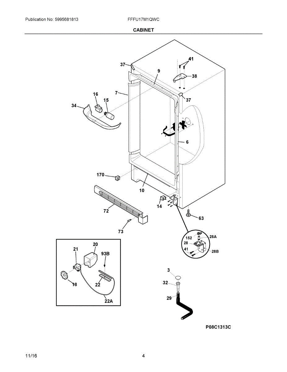 The Door switch is an OEM replacement part for Frigidaire refrigerators. This part turns the light on/off as the door opens and closes. Causes of a faulty door switch include normal wear of electrical contacts from repetitive on/off cycles. Moisture exposure may potentially corrode internal connections. Symptoms of a bad light/switch include: