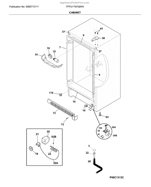 The Door switch is an OEM replacement part for Frigidaire refrigerators. This part turns the light on/off as the door opens and closes. Causes of a faulty door switch include normal wear of electrical contacts from repetitive on/off cycles. Moisture exposure may potentially corrode internal connections. Symptoms of a bad light/switch include: