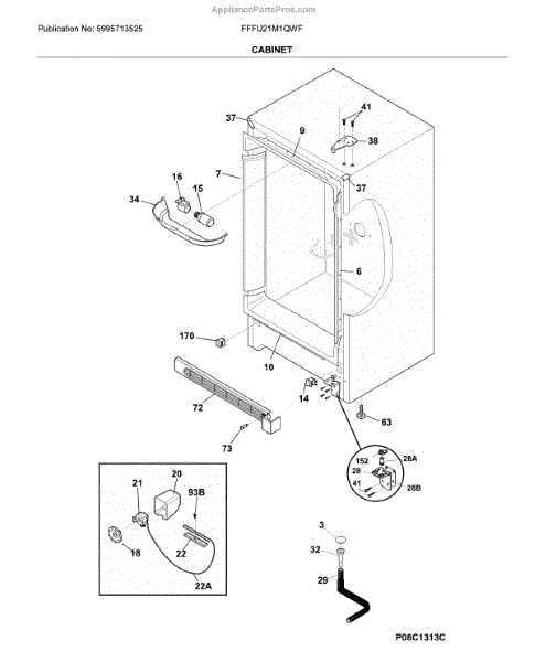 The Door switch is an OEM replacement part for Frigidaire refrigerators. This part turns the light on/off as the door opens and closes. Causes of a faulty door switch include normal wear of electrical contacts from repetitive on/off cycles. Moisture exposure may potentially corrode internal connections. Symptoms of a bad light/switch include: