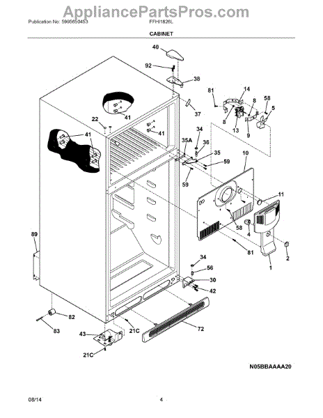 The Access Cover is an OEM replacement part for Frigidaire refrigerators. It serves as a protective barrier, covering the internal cooling system and wiring components.