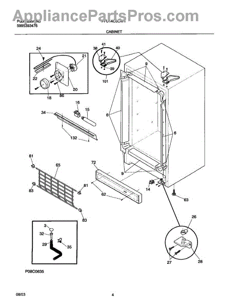 The Door switch is an OEM replacement part for Frigidaire refrigerators. This part turns the light on/off as the door opens and closes. Causes of a faulty door switch include normal wear of electrical contacts from repetitive on/off cycles. Moisture exposure may potentially corrode internal connections. Symptoms of a bad light/switch include: