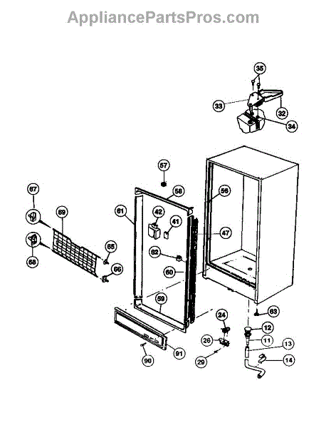 This top support (left) is a molded mounting bracket that secures the refrigerator cabinet or inner liner at the cabinet's upper-left corner to restore proper alignment and stable fit of the top section. It replaces a cracked, broken or missing upper-left support. What it does: