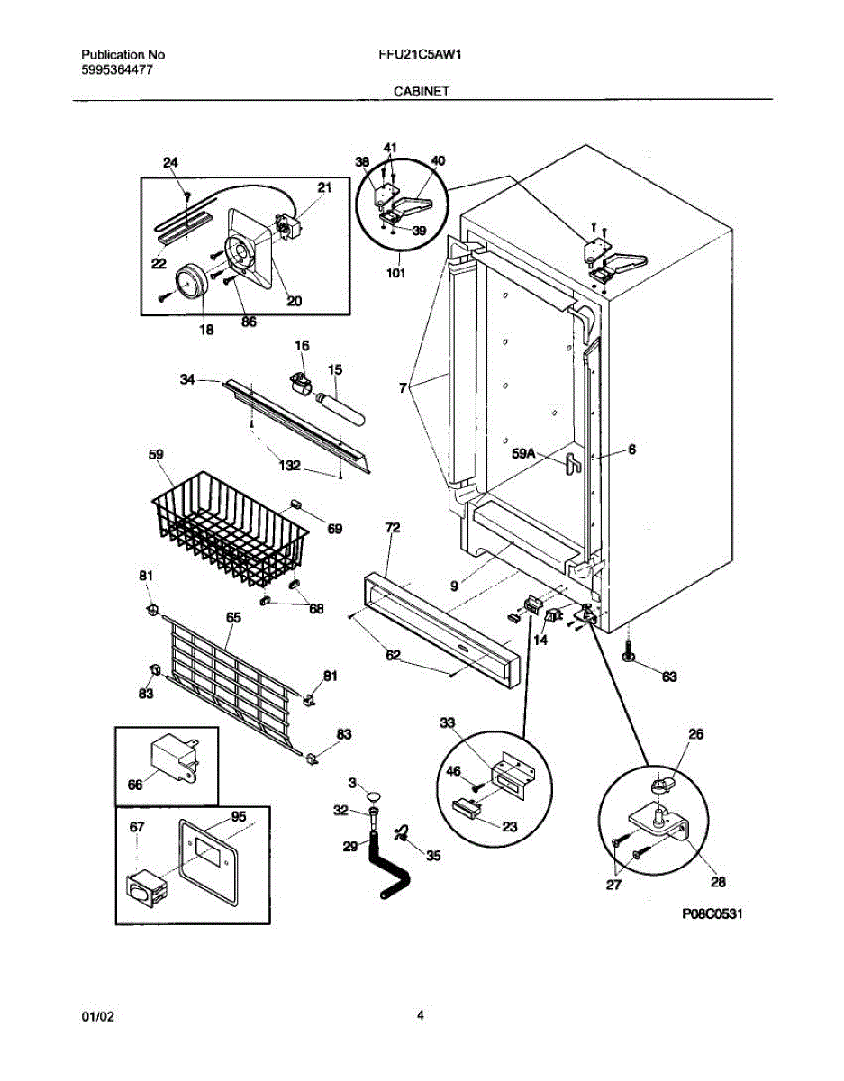 Protective cover that snaps over your freezer's door hinge. Replace if cracked, broken, or missing to restore a finished look and shield the hinge.