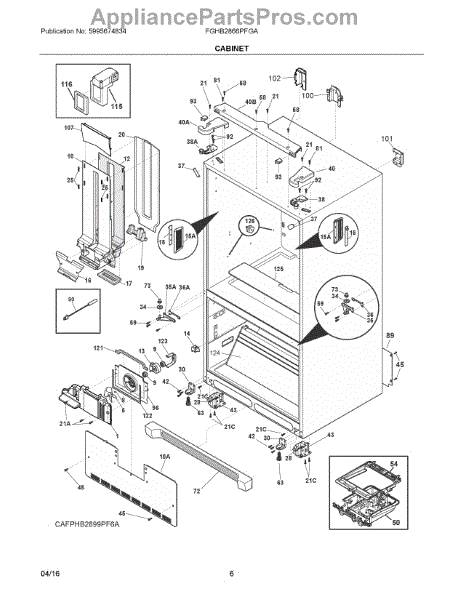 Foam insulation installs in refrigerator cabinet walls and interior surfaces. Replace if cracked, compressed, torn, or missing to restore efficiency.