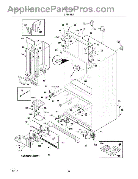 Foam insulation installs in refrigerator cabinet walls and interior surfaces. Replace if cracked, compressed, torn, or missing to restore efficiency.
