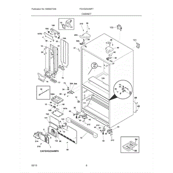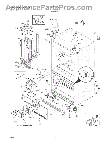 Foam insulation installs in refrigerator cabinet walls and interior surfaces. Replace if cracked, compressed, torn, or missing to restore efficiency.