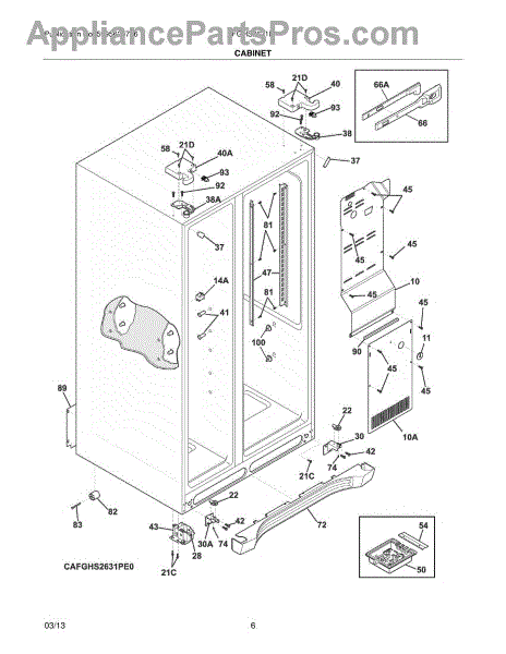 Cap cover for side-by-side refrigerators. Replaces cracked, broken, or missing covers. Installs on interior or exterior surfaces to restore appearance.