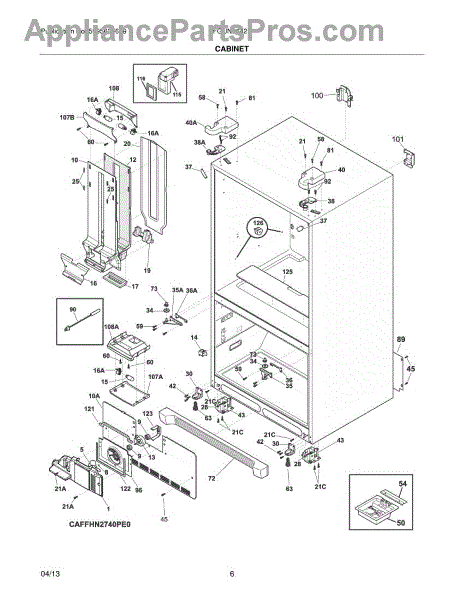 Foam insulation installs in refrigerator cabinet walls and interior surfaces. Replace if cracked, compressed, torn, or missing to restore efficiency.