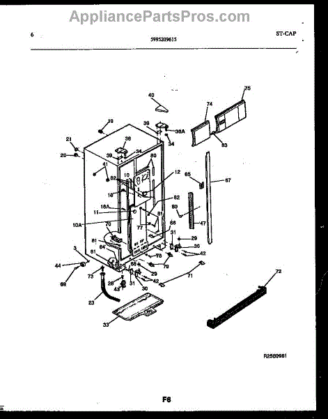 This plug covers the small factory test opening on an appliance cabinet or liner. Replacing a missing or damaged plug helps close the opening to maintain a better seal and restore a clean, finished appearance.