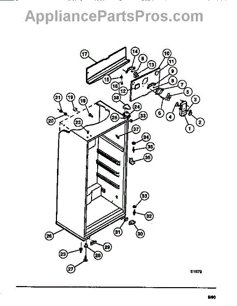 This factory fastener secures appliance panels and components. Replace a missing, stripped, or corroded screw to restore a tight, rattle-free fit and keep brackets and covers properly aligned.