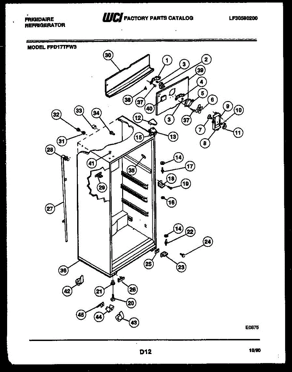 This factory fastener secures appliance panels and components. Replace a missing, stripped, or corroded screw to restore a tight, rattle-free fit and keep brackets and covers properly aligned.
