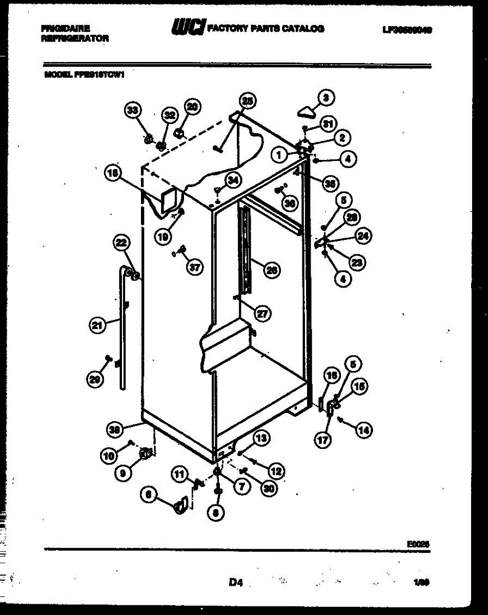 Lower hinge pin secures the refrigerator door to the cabinet, acting as the pivot point. Replace if worn, damaged, or broken to restore smooth operation.