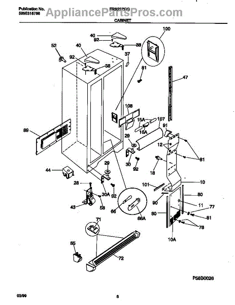 Almond cabinet corner trim piece for freezers. Replaces cracked, broken, or missing corner trim. Installs on exterior cabinet edges for a finished look.