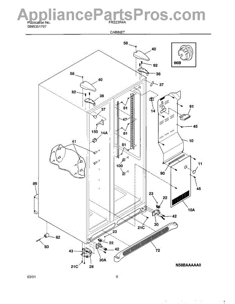 The Door Light Switch is an OEM part for Frigidaire refrigerators. It is a component located inside the refrigerator door that turns the interior light on and off based on door position. The light switch works with a door switch plate and light socket assembly to automatically illuminate the interior when the door is opened. Causes of a bad switch can be normal wear and tear over time, especially from frequent door openings. The contact points within the switch can become corroded or damaged. Symptoms of a bad light switch include: