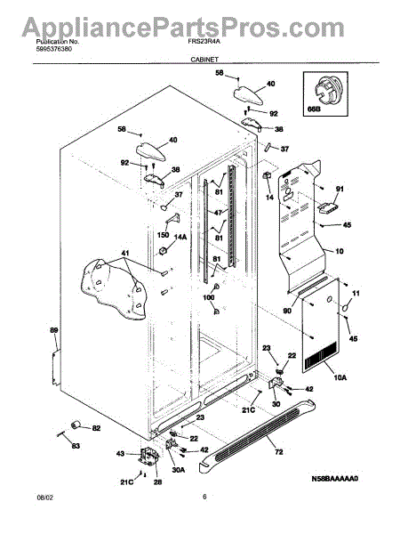 This plug covers the small factory test opening on an appliance cabinet or liner. Replacing a missing or damaged plug helps close the opening to maintain a better seal and restore a clean, finished appearance.