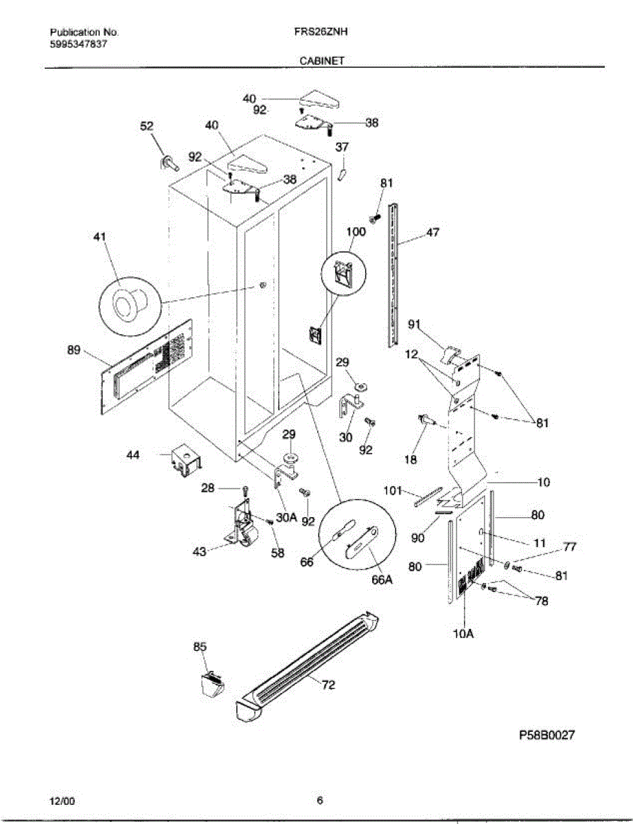 Black plastic cover that snaps over the lower door hinge on your refrigerator. Replace if cracked, broken, or missing to restore a finished look.