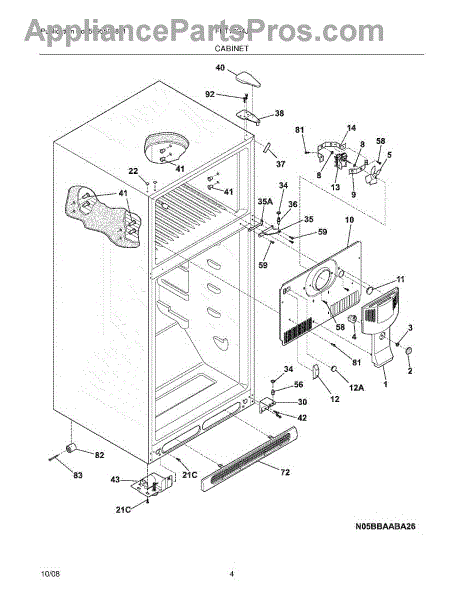 Parts for Frigidaire FRT17G4JW2: 05 - Cabinet Parts