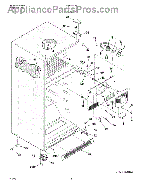 Parts for Frigidaire FRT18B4AW8: 05 - Cabinet Parts