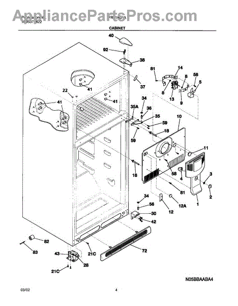 Parts for Frigidaire FRT18B4AZ6: 05 - Cabinet Parts