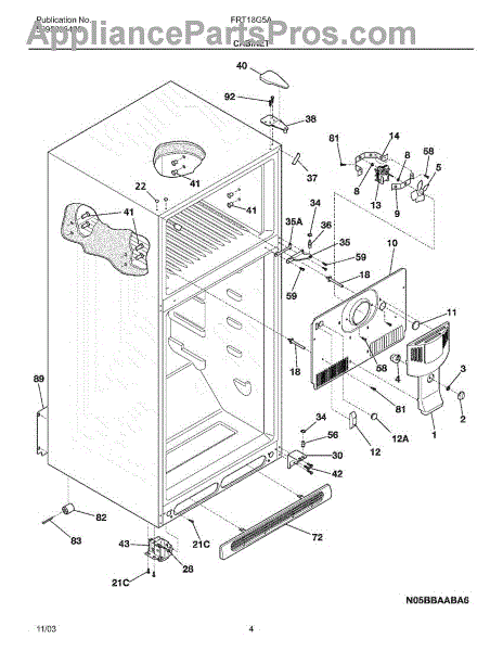 The Access Cover is an OEM replacement part for Frigidaire refrigerators. It serves as a protective barrier, covering the internal cooling system and wiring components.