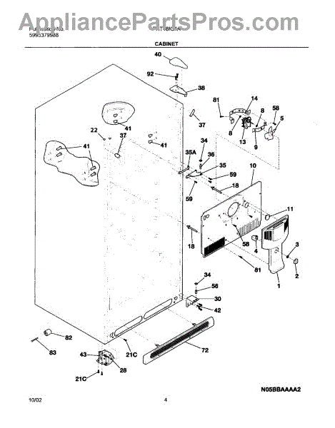 The Screw is an OEM replacement part for Frigidaire refrigerators. This small but essential component is used to secure various parts of the appliance, such as panels, brackets, or internal fixtures, ensuring the refrigerator's structural integrity and proper operation.