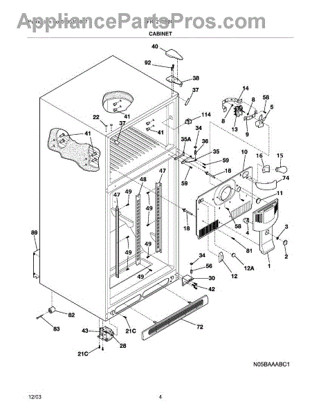 Parts for Frigidaire FRT21BH8CS1: 05 - Cabinet Parts