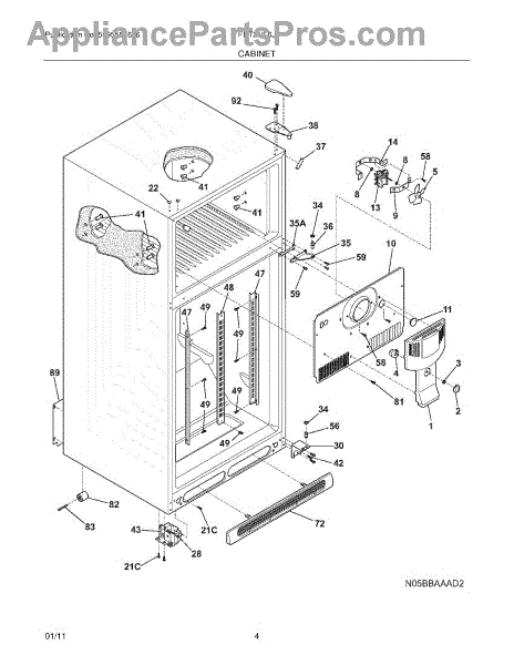 The Access Cover is an OEM replacement part for Frigidaire refrigerators. It serves as a protective barrier, covering the internal cooling system and wiring components.