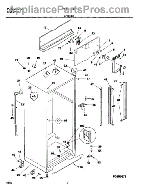 This plug covers the small factory test opening on an appliance cabinet or liner. Replacing a missing or damaged plug helps close the opening to maintain a better seal and restore a clean, finished appearance.