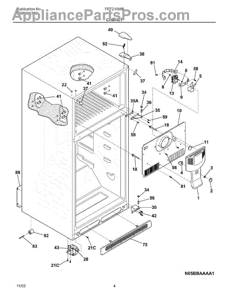 The Access Cover is an OEM replacement part for Frigidaire refrigerators. It serves as a protective barrier, covering the internal cooling system and wiring components.