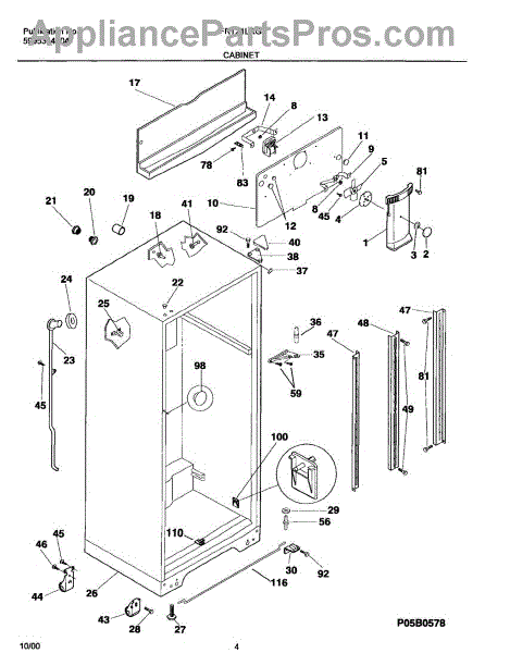 This plug covers the small factory test opening on an appliance cabinet or liner. Replacing a missing or damaged plug helps close the opening to maintain a better seal and restore a clean, finished appearance.