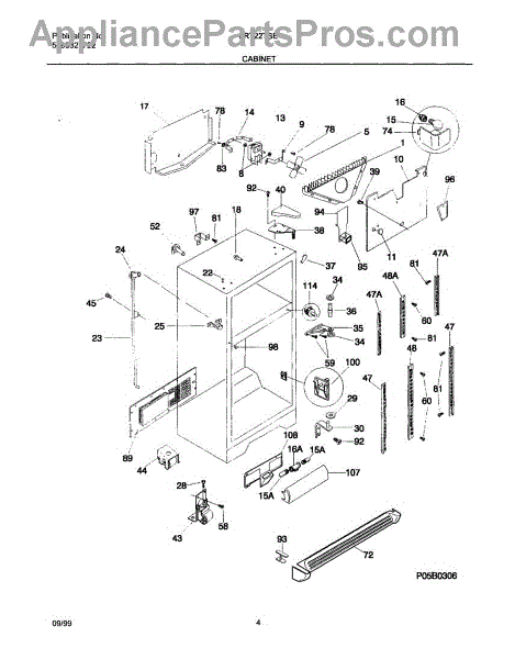 Parts for Frigidaire FRT22TSEB4: 04 - Cabinet Parts