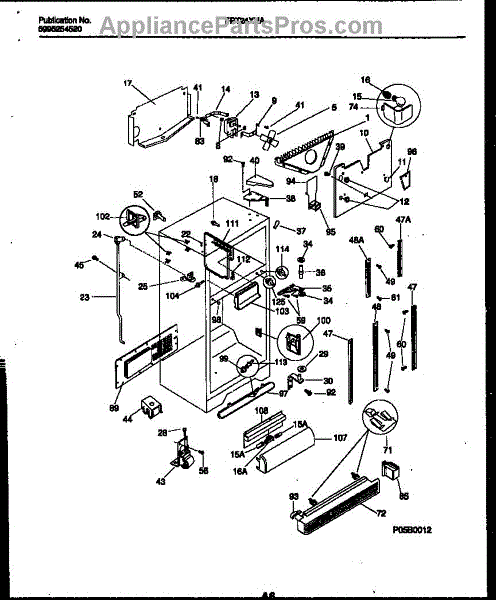 The Evaporator Motor is an OEM part for Frigidaire refrigerators. This component powers the evaporator fan, which circulates cold air throughout the refrigerator and freezer compartments, ensuring consistent temperatures for proper food storage. Compatible fan blade is part number AP2152058
