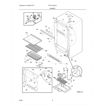 Collects defrost water from the evaporator and channels it to the drain system. Replace if cracked, broken, or missing to prevent leaks inside the cabinet.