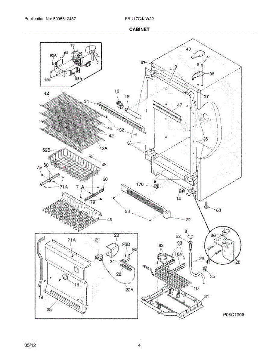 Collects defrost water from the evaporator and channels it to the drain system. Replace if cracked, broken, or missing to prevent leaks inside the cabinet.