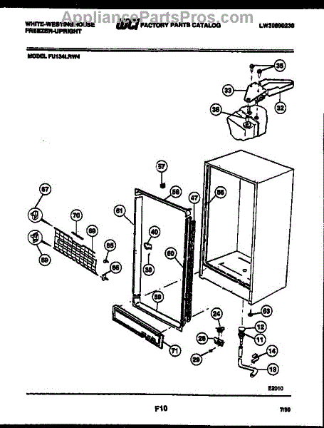 This top support (left) is a molded mounting bracket that secures the refrigerator cabinet or inner liner at the cabinet's upper-left corner to restore proper alignment and stable fit of the top section. It replaces a cracked, broken or missing upper-left support. What it does: