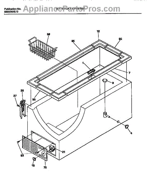 The Freezer Basket is an OEM part for Frigidaire freezers. It provides organized storage space within the freezer, allowing for easy access and efficient use of the freezer's capacity by keeping items contained and separated. It measures approximately 18 x 11 inches.