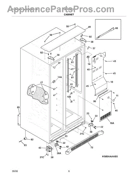 This plug covers the small factory test opening on an appliance cabinet or liner. Replacing a missing or damaged plug helps close the opening to maintain a better seal and restore a clean, finished appearance.
