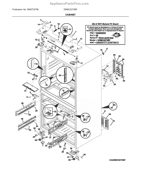 The PC Board is an OEM replacement part for Frigidaire refrigerators. As the central "brain" of the refrigerator, it controls all electronic functions and directs operational tasks. The board receives input from sensors and buttons to orchestrate temperature regulation, defrost cycles, lighting, and more. Causes of a bad PC board can include failure over time due to heat exposure, power surges damaging sensitive electronic chips, or liquid ingress corroding circuitry. Symptoms of a bad PC board include: