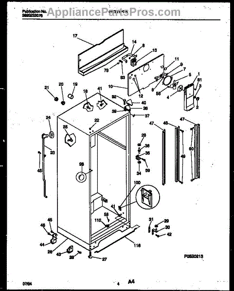The Evaporator Motor is an OEM part for Frigidaire refrigerators. This component powers the evaporator fan, which circulates cold air throughout the refrigerator and freezer compartments, ensuring consistent temperatures for proper food storage. Compatible fan blade is part number AP2152058