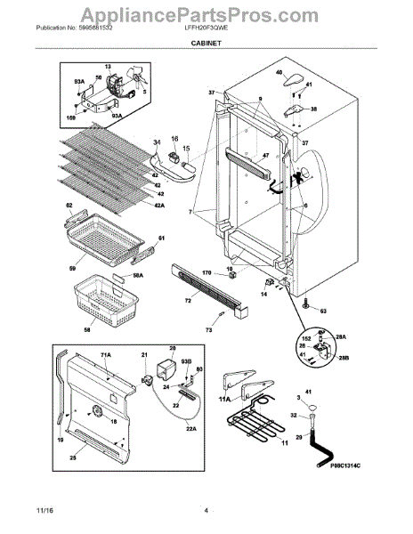 The Door switch is an OEM replacement part for Frigidaire refrigerators. This part turns the light on/off as the door opens and closes. Causes of a faulty door switch include normal wear of electrical contacts from repetitive on/off cycles. Moisture exposure may potentially corrode internal connections. Symptoms of a bad light/switch include: