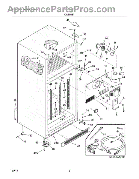 A molded gasket that seals the evaporator coil cover to reduce air bypass and help direct cold air over the coils for more consistent cooling. Replaces a worn or damaged seal to help restore proper airflow and reduce frost buildup. What it does: