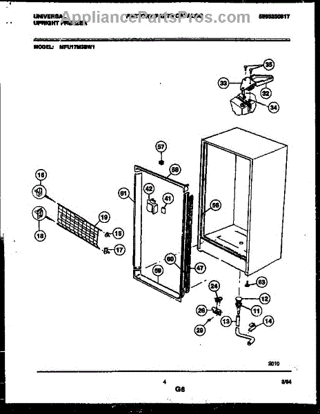 This top support (left) is a molded mounting bracket that secures the refrigerator cabinet or inner liner at the cabinet's upper-left corner to restore proper alignment and stable fit of the top section. It replaces a cracked, broken or missing upper-left support. What it does: