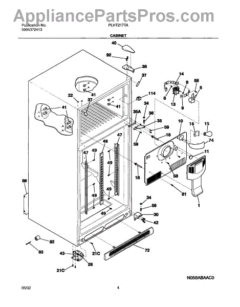 The Upper Hinge is an OEM part for Frigidaire refrigerators. It is responsible for securing the top of the refrigerator door to the cabinet, allowing the door to open and close smoothly and securely. This hinge ensures proper alignment and functionality of the refrigerator door.