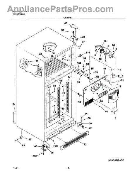 The Access Cover is an OEM replacement part for Frigidaire refrigerators. It serves as a protective barrier, covering the internal cooling system and wiring components.