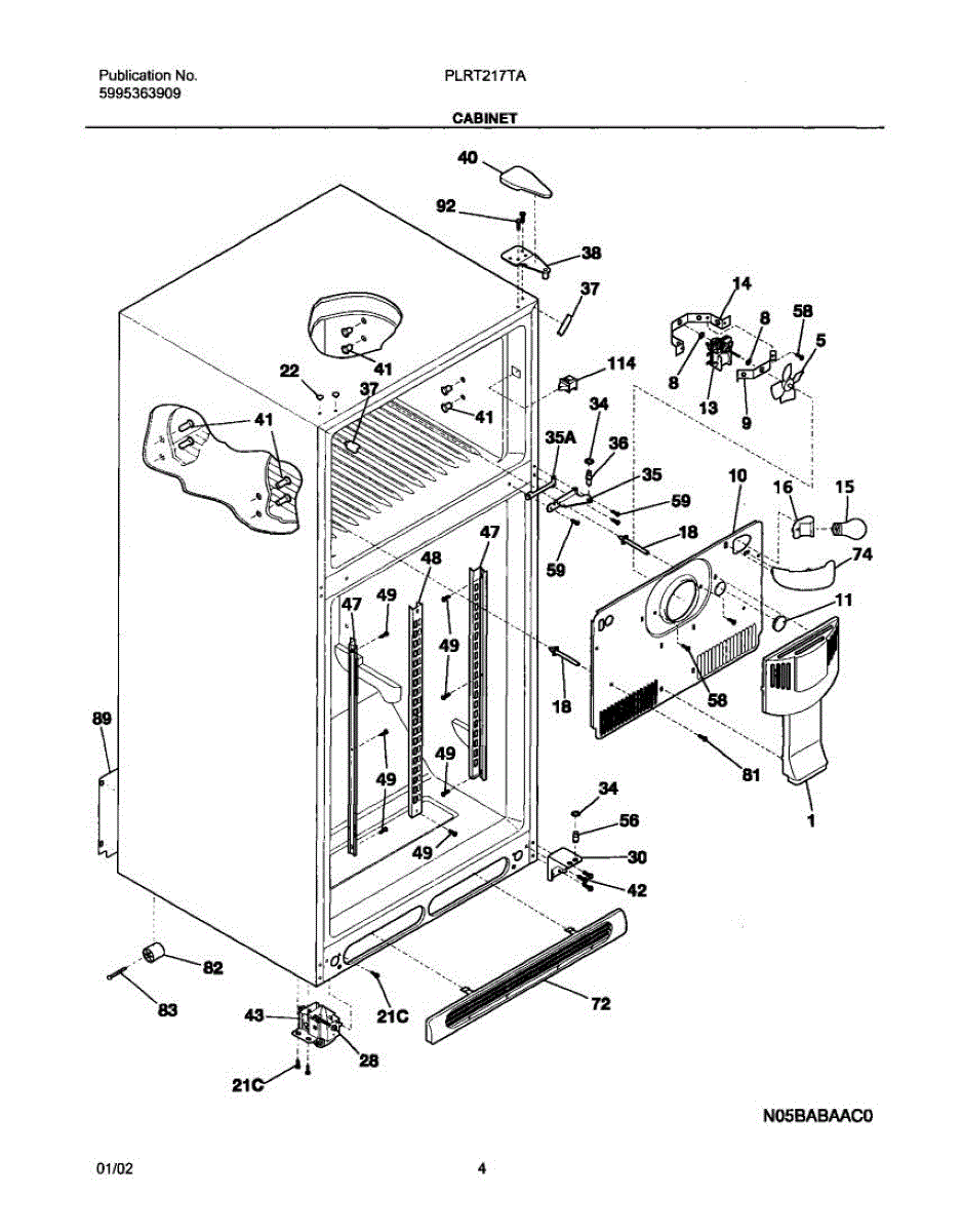 Protective cardboard or plastic cover that installs over the internal cooling system and wiring. Replace if cracked, torn, ripped, or missing.