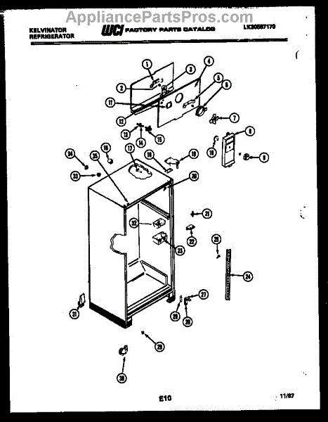 Almond cabinet corner trim piece for freezers. Replaces cracked, broken, or missing corner trim. Installs on exterior cabinet edges for a finished look.